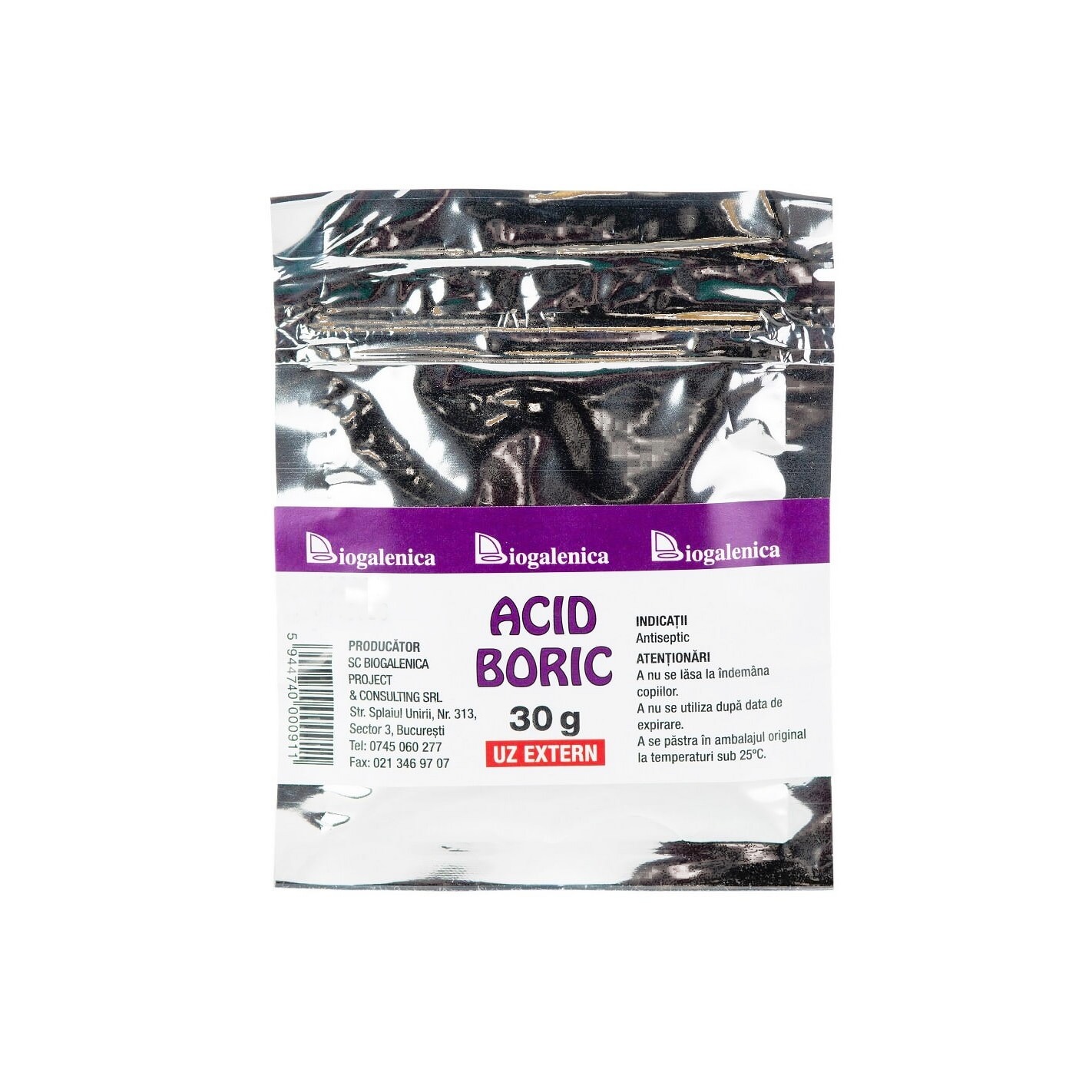 La nivel casnic, acidul boric poate fi utilizat pentru curatenie si dezinfectare si de asemenea pentru a elimina daunatorii prezenti, precum furnici, purici, etc.