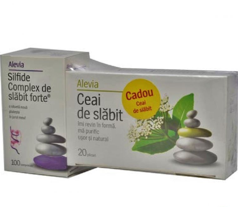 Alevia Silfide Complex De Slabit Forte, 100 comprimate + Ceai de slăbit, 30 plicuri, Alevia