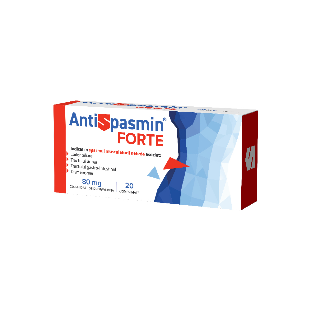 Antispasmin FORTE 80 mg comprimate conține ca substanță activă clorhidrat de drotaverină care este un medicament antispastic.