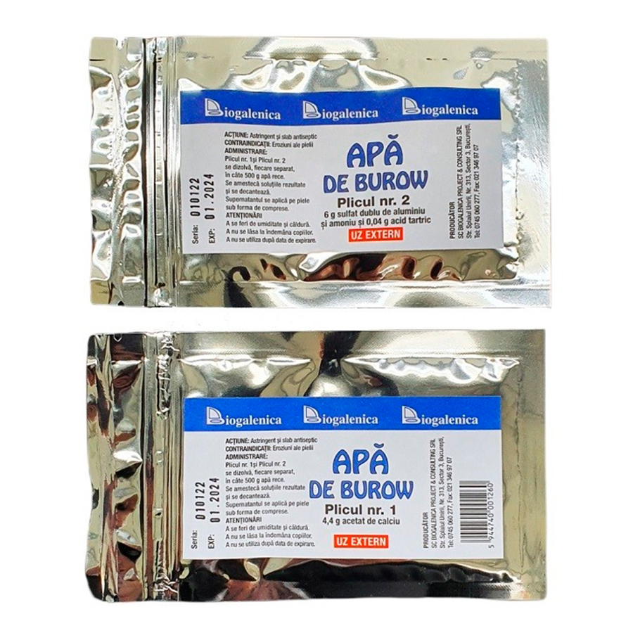 Plicul nr.1 si plicul nr.2 se dizolva, fiecare separat, in cite 500ml apa rece. Se amesteca solutiile rezultate si se decanteaza. Solutia se aplica pe piele sub forma de comprese.