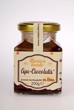 Crema tartinabilă cu textură moale și fină este un desert delicious, fӑrӑ zahӑr. Este obținut prin combinarea ingredientelor naturale ce asigură un aport optim de energie în fiecare zi atât pentru adulți, cât și pentru copii. Api-ciocolata este un produs sănătos, fără adaos de zaharuri, îndulcit cu miere naturală de albine