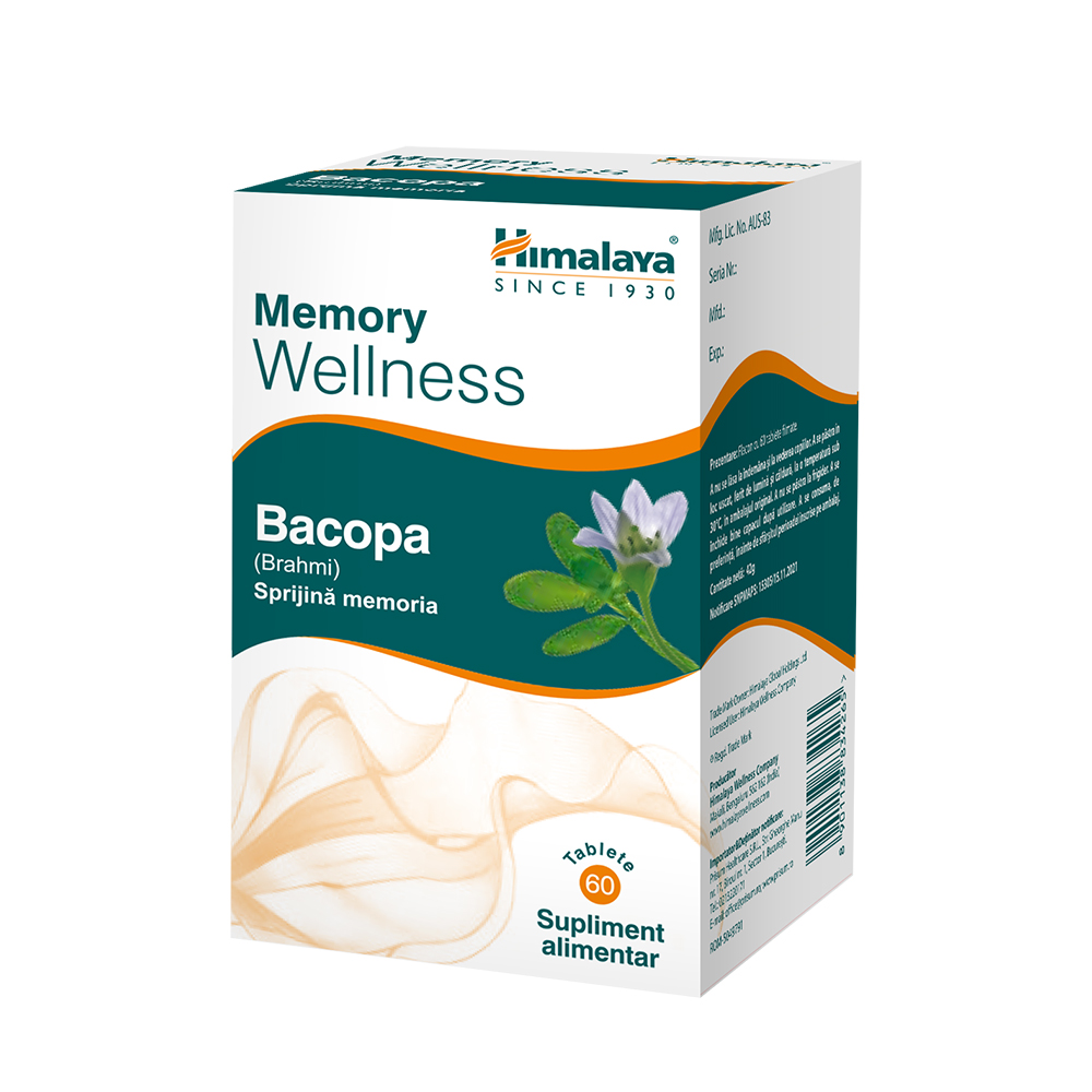 Bacopa Himalaya Memory Wellness Focus, 60 tablete, producator Himalaya Global Holdings Ltd., India, este un supliment natural, pe baza de plante, care contribuie la mentinerea agerimii, concentrarii si energizarii mentale.