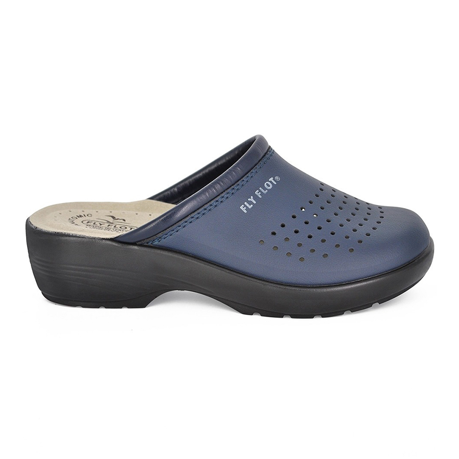 Saboti medicali profesionali Fly Flot 002 sunt certificati CE si au partea superioara confectionata din piele ecologica si din materiale inovatoare destinate industriei alimentare, farmaceutice si spitalelor. Brantul este din piele moale, iar forma este anatomica si antisoc. Talpa antialunecare este realizata din poliuretan si are o inaltime de 4.7 cm.