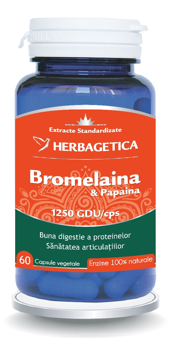 Bromelaina si Papaina, 60 capsule, Herbagetica