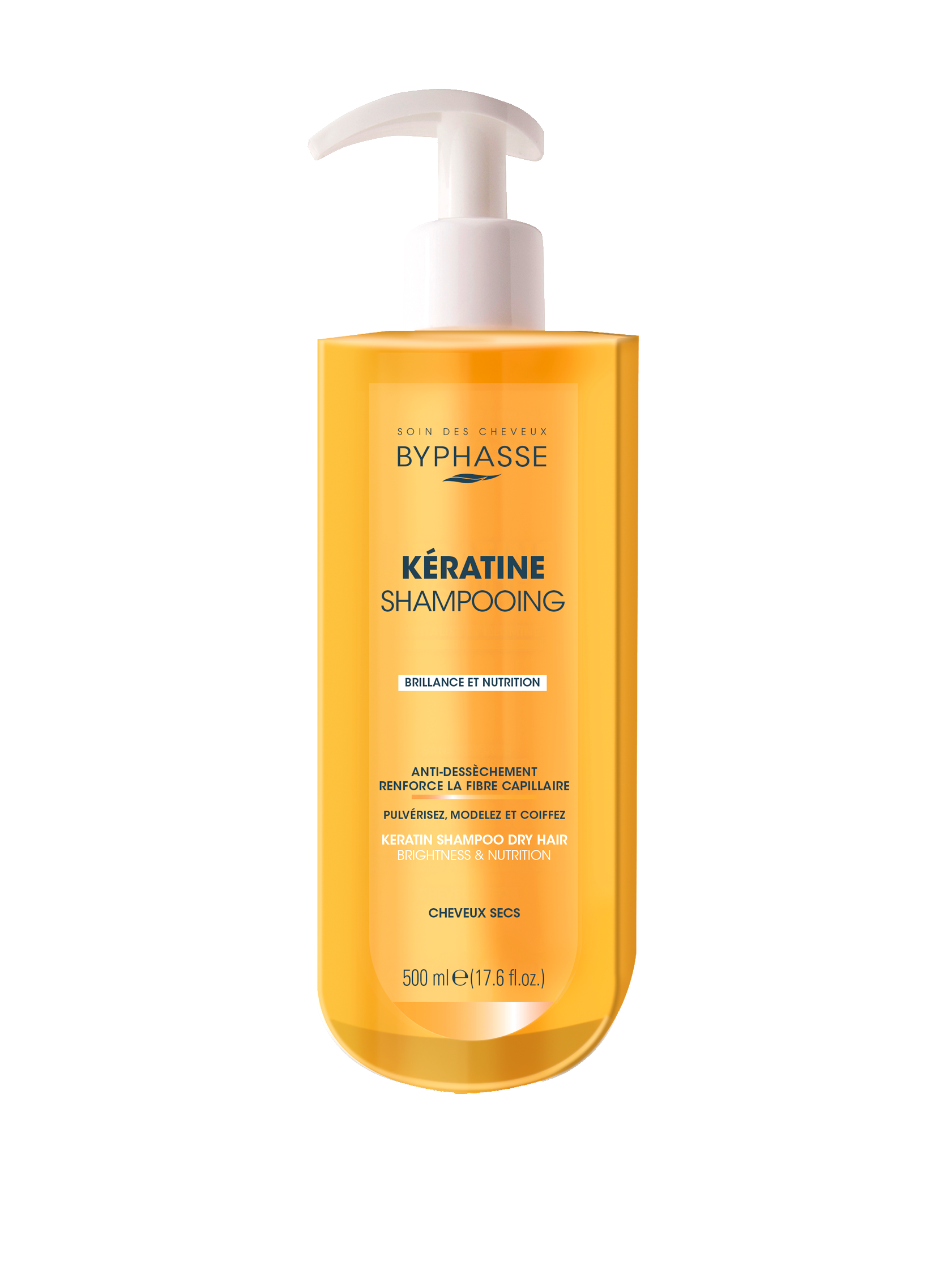 Șamponul cu keratină SUBLIM PROTECT SHAMPOO KERATIN (500 ml), producător Byphasse, Spania, este destinat părului uscat și degradat, redându-i strălucirea și vigoarea. Protejează părul de uscăciune, hrănindu-l în același timp și făcându-l mai puternic și mai rezistent.