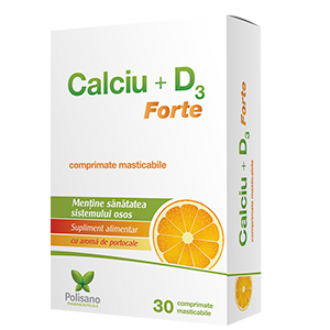Calciu cu vitamina D3 Forte portocale, 30 comprimate masticabile, Polisano Pharmaceuticals