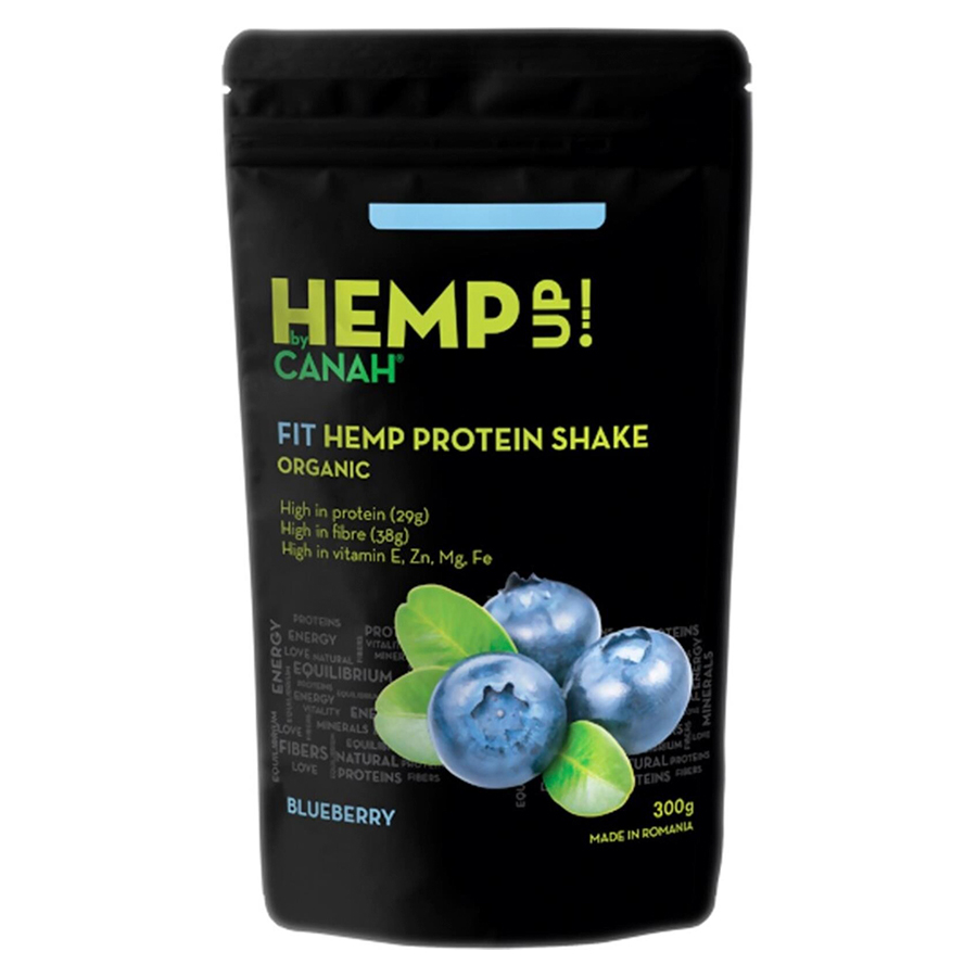 Shake proteic de canepa ECO FIT Hemp Up 300 g este un mix de pudre (pudra proteica de canepa, afine, banane, baobab) care te ajuta in CURELE DE SLaBIRE si modelare a corpului.