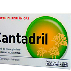 Cantadril este un supliment alimentar utilizat în special pentru răgușeală sau dureri minore de gât. Fără zahăr, cu îndulcitor. Aromă de miere și mure.