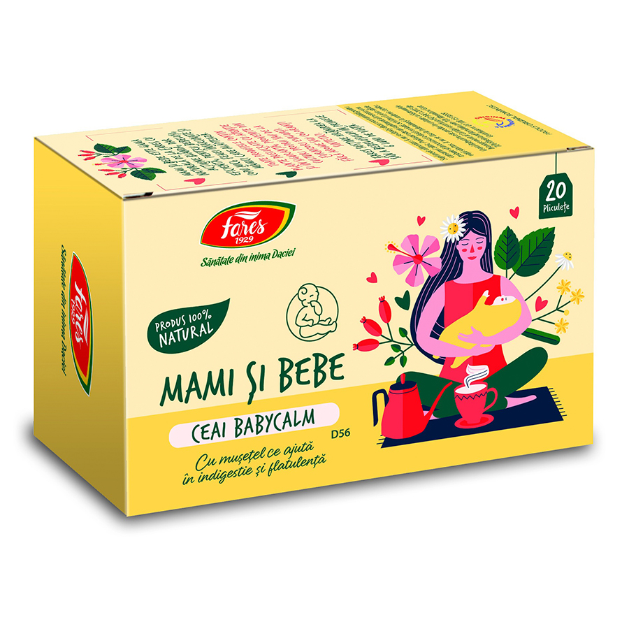 Ceai pentru eliminarea disconfortului abdominal al bebelusilor. Formula din plante si fructe, 100% naturala. Actiune blanda si sigura pentru sanatatea celor mici. Ceai bine tolerat. Se poate administra din prima zi de viata. Recomandat pana la varsta de 1 an. Peste 2.5 milioane de doze de ceai Baby Calm au fost vandute in ultimii 5 ani.