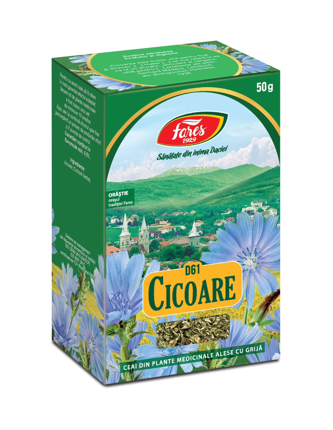 Partea aeriană a plantei Cichorium intybus L., fam. Asteraceae, conţine principii amare, acid cicoric, cicorină, flavonozide, compuşi triterpenici, inulină, arginină, săruri minerale.