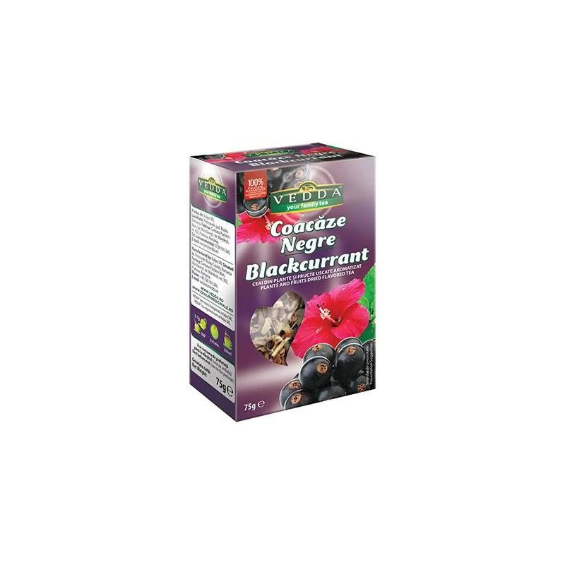 Ceai din plante si fructe uscate aromatizat cu coacaze negre.