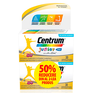 Centrum Junior Pro A-Zinc, 30 comprimate masticabile 1+1 cu 50% REDUCERE, Haleon