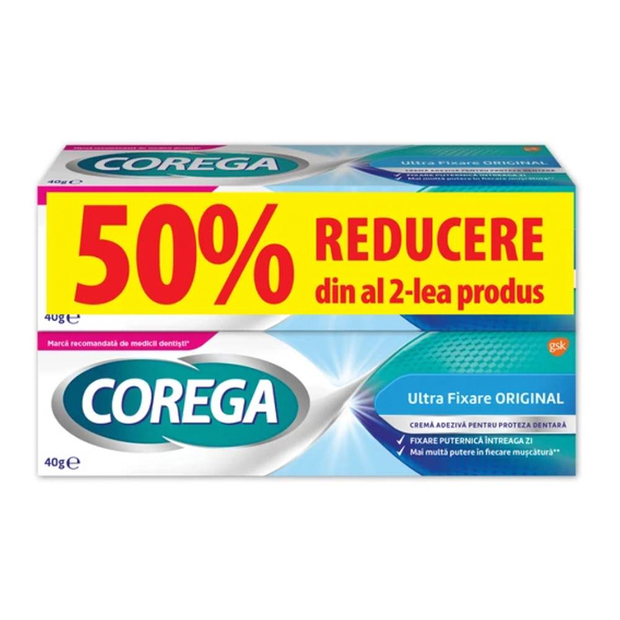 Corega Ultra Fixare Original, 40g, duo pack, Haleon Romania