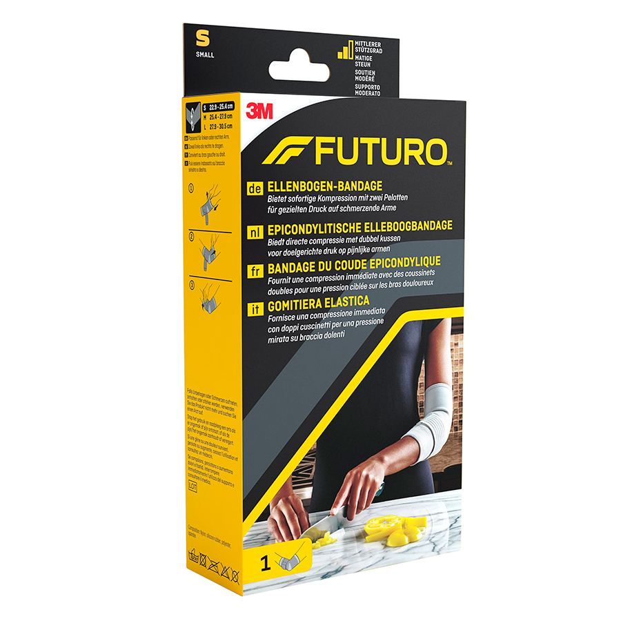 Materiale non iritante folosite permit pielii sa respire. Confera maximum de confort, si este discret sub haine. Aceasta ajuta la ameliorarea edemului din zona cotului, ajuta la ameliorarea simptomelor de epicondilita, durerile de cot ale sportivilor si a persoanelor active.