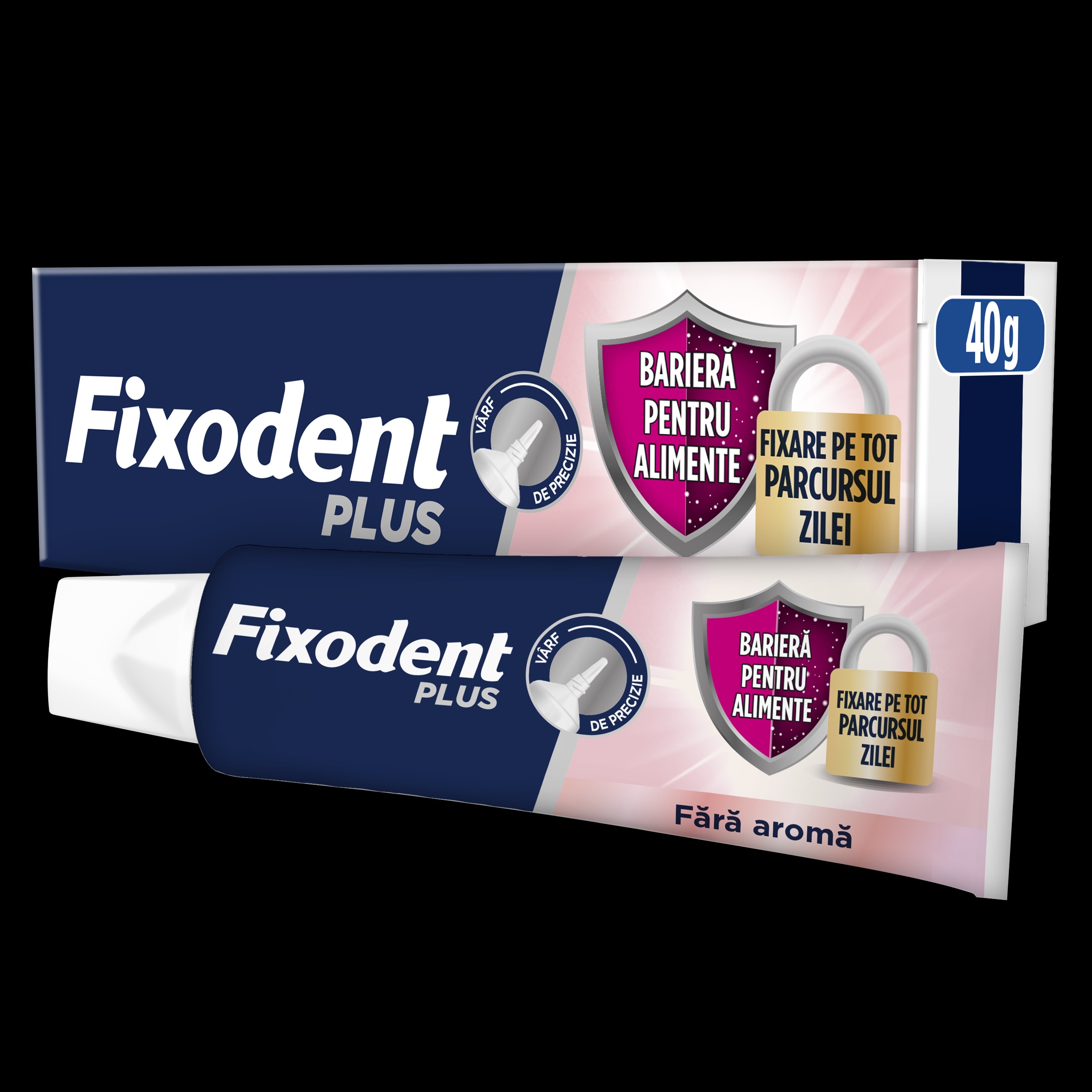 Utilizati Fixodent Plus pentru a ajuta la fixarea protezei dentare pentru intreaga zi, in special atunci cand mancati.