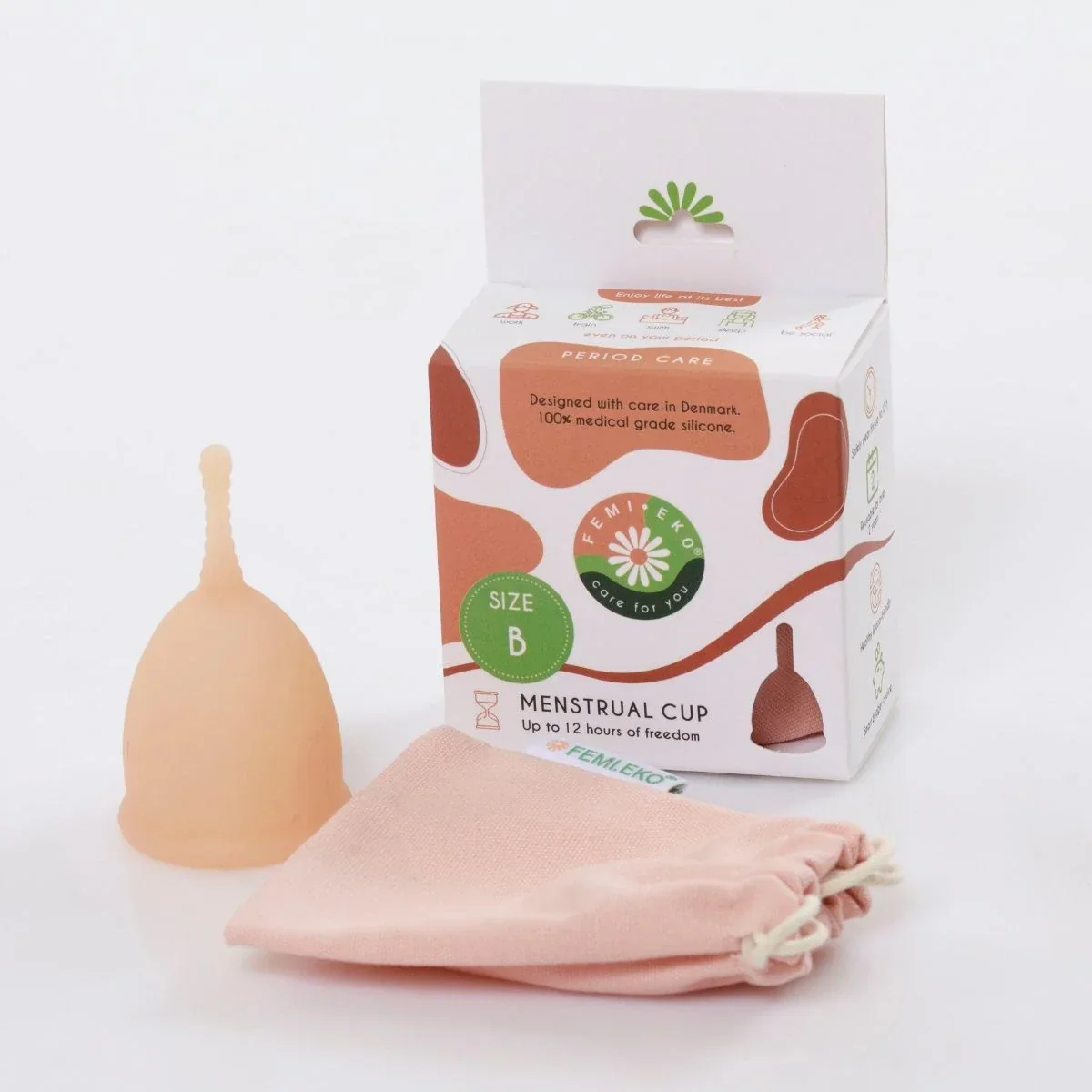Cupa menstruala 100% silicon medicinal, culoare powder marimea B/M, 1 bucata, Femieko Group