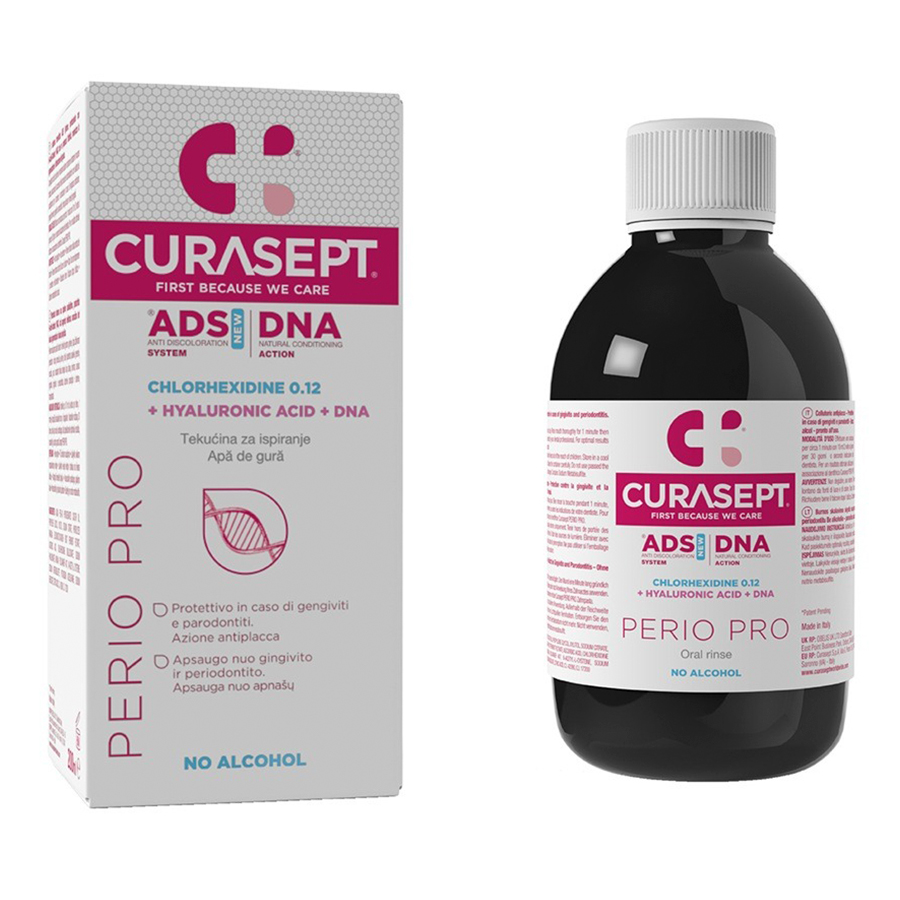 Datorita continutului de clorhexidina, apa de gura Curasept ADS 212 asigura o protectie intensiva pentru gingiile iritate.