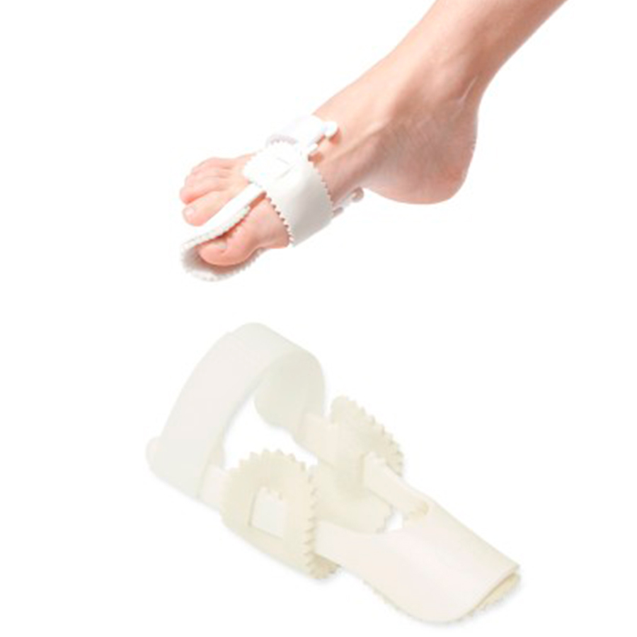 Corecteaza deformatia degetului mare, restabilindu-i pozitia normala. Simplu si confortabil de utilizat, avand suprafata interna captusita cu un material moale. Datorita presiunii pe care o exercita asupra halucelui, utilizarea pe o perioada lunga de timp va duce la restabilirea treptata a posturii corecte a acestuia.