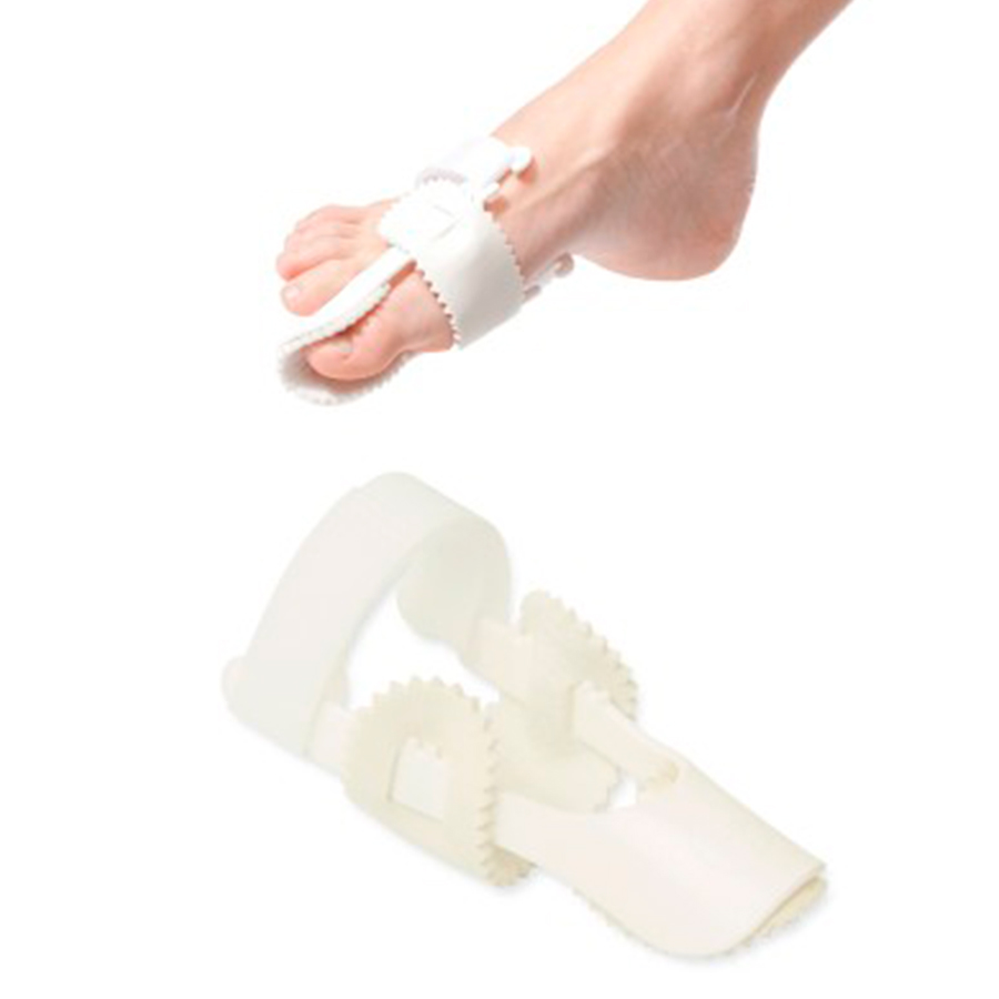 Corecteaza deformatia degetului mare, restabilindu-i pozitia normala. Simplu si confortabil de utilizat, avand suprafata interna captusita cu un material moale. Datorita presiunii pe care o exercita asupra halucelui, utilizarea pe o perioada lunga de timp va duce la restabilirea treptata a posturii corecte a acestuia.