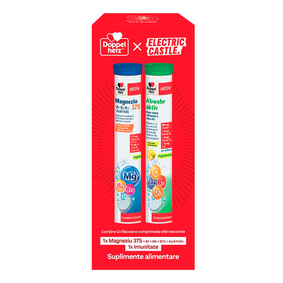 Doppelherz Electric Mg375+B1+B6+B12+Acid folic, 15 comprimate efervescente+Imunitate, 15 comprimate efervescente, Queisser Pharma