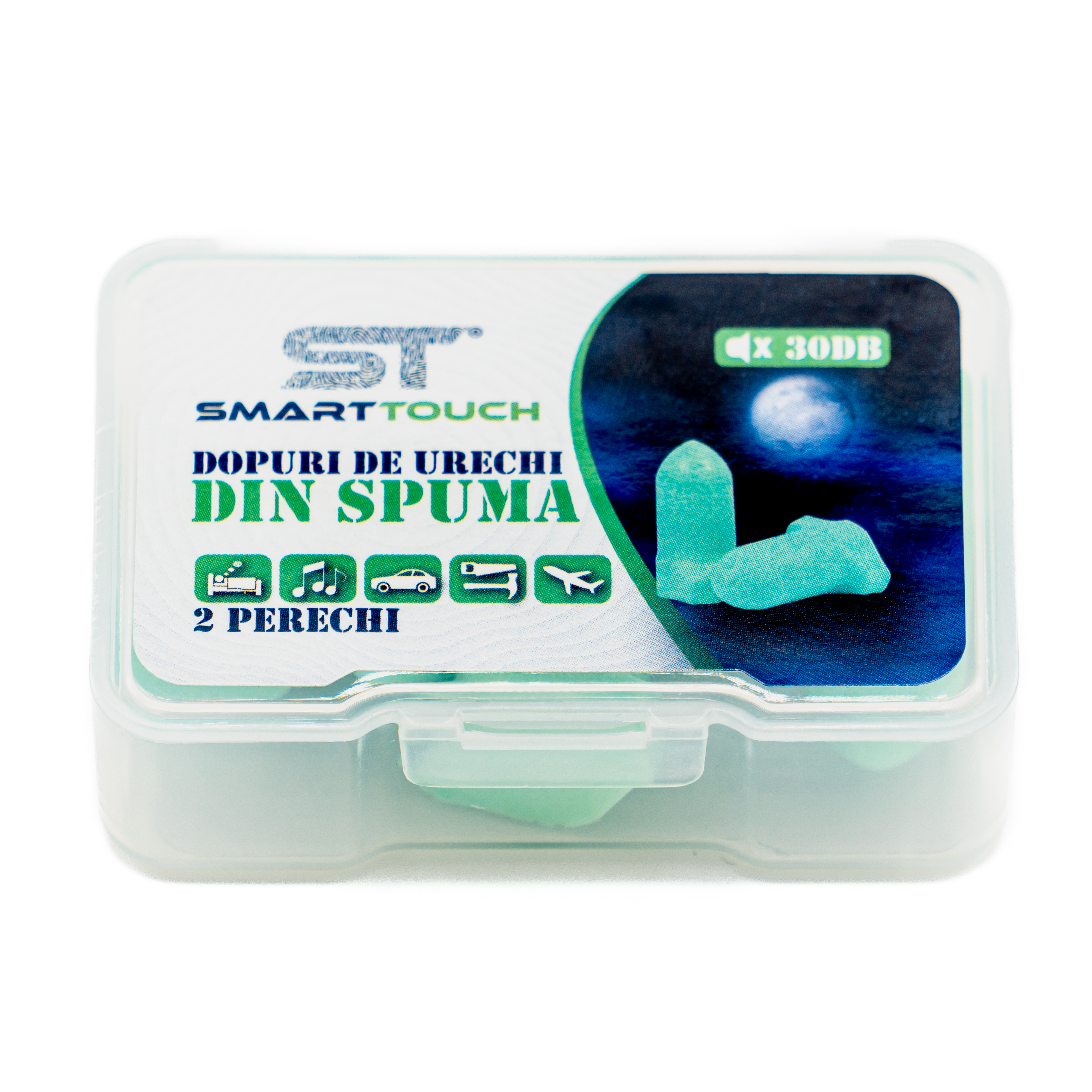Smart Touch - Ideale pentru dormit, calatorie si oriunde doriti liniste. Dopurile de urechi din spuma cu memorie au fost special create pentrua se adapta la forma canalului auditiv si pentru a asigura o eficienta deosebita.
