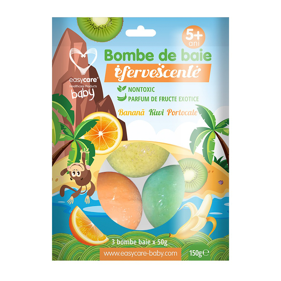 Easycare Baby Bombe de baie efervescente pentru copii parfum de fructe exotice, 3 bucati, Dasco