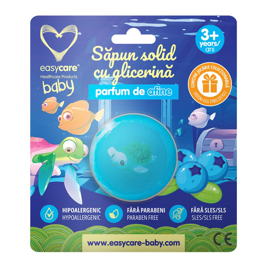 Sapunul solid cu glicerina pentru copii Easycare Baby este ideal pentru crearea obiceiului de spalare si a dezvolta rabdarea si creativitatea. Jucaria din interiorul sapunului se va dezvalui pe masura ce acesta este consumat. Jucariile utilizate fac parte din diverse colectii (animale marine, masini, unicorni sau catelusi) si vor starni curiozitatea copiile pentru a le colectiona. Sapunul cu glicerina hidrateaza pielea si restabileste echilibrul natural al acesteia, este fara parabeni, alergeni, SLES sau SLS, fiind ideal pentru utilizarea zilnica.