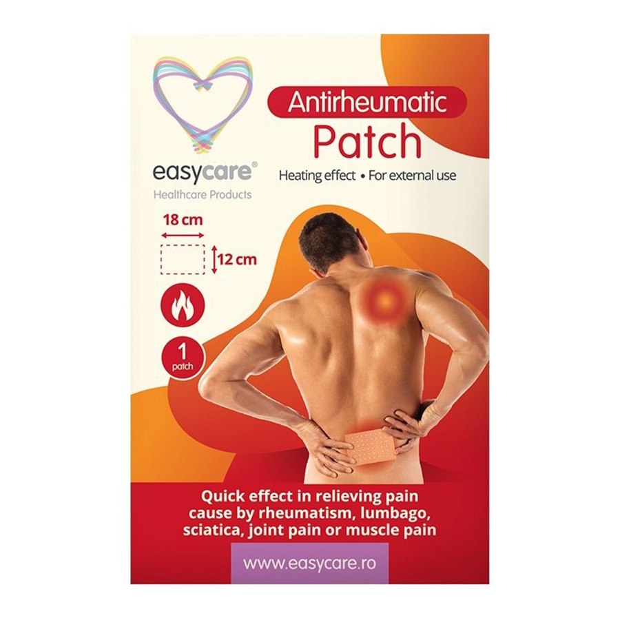 Plasturi antireumatici EasyCare cu efect de incalzire ideali pentru ameliorarea rapida a durerilor cauzate de reumatism, lumbago, sciatica, dureri ariculare sau dureri musculare. Amestecul de subsante active, confera un efect rapid de incalzire al zonei pe care se aplica plasturele.