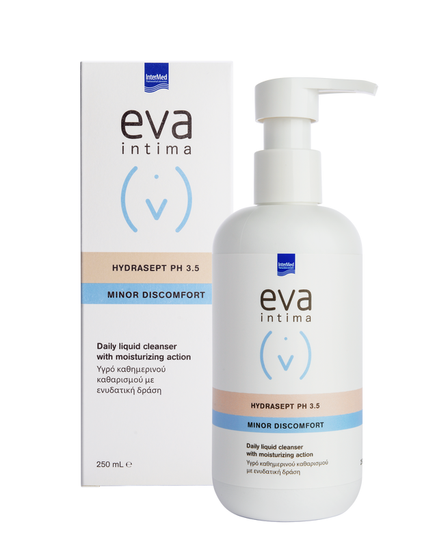 Gelul Eva Intima Wash Hydrasept, 250 ml, produs de Ioulia & Irene Tsetis Pharmaceutical Laboratories (INTERMED), are un pH de 3.5, ofera protectie antimicrobiana naturala, calmeaza si hidrateaza, fiind special conceput pentru femeile cu diabet zaharat sau uscaciune intima. Este un produs cu o formula moale, fara sapun, compatibil cu fiziologia zonei sensibile a femeilor din grupuri deosebit de vulnerabile. Utilizarea Eva Intima Hydrasept impreuna cu un tratament pentru uscaciune ajuta la ameliorarea cu succes a acesteia. Testat dermatologic.