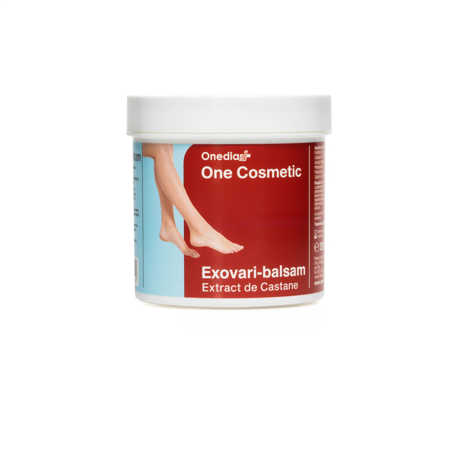 Exovari-balsam One Cosmetic, 250 ml, produs de Onedia Prodcom, Romania, este o crema cu extract de castane pentru picioare obosite si varicoase. Crema Exovari se recomanda persoanelor care sufera de simptome ale insuficientei venoase cronice (senzatia de picioare „grele”, edeme, echimoze si varice).