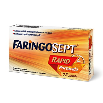 Faringosept Rapid Portocala 2mg/0.6mg/1.2mg*12comprimate, Terapia