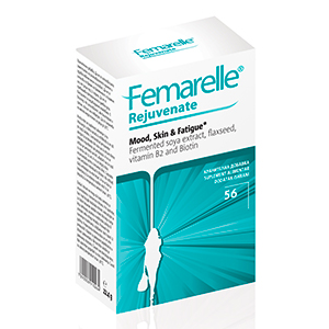 Formula unică Femarelle® Rejuvenate include derivatul fermentat din soia (DT56a), semințe de în vitamina B2 și biotină, care contribuie la menținerea metabolismului în limite normale, bună funcționare a sistemului nervos și întreținerea spectului pielii. De asemenea, biotină joacă un rol important în menținerea sănătății părului, iar vitamina B2 contribuie la reducerea stării de oboseală cronică. Femarelle®Rejuvenate este un supliment alimentar care nu conține hormoni.