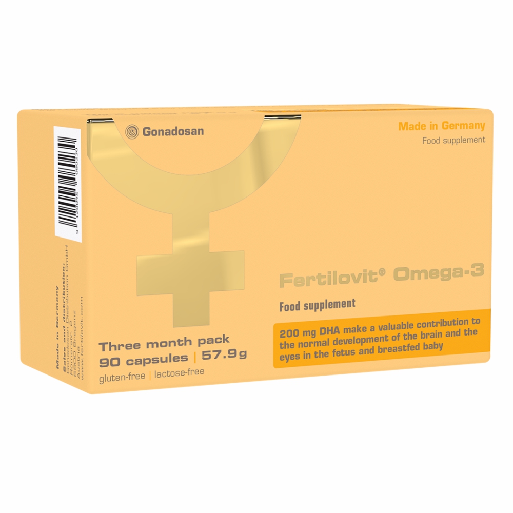 Fertilovit Omega-3, 90 capsule, produs de Gonadosan, Elvetia/Austria, este un supliment alimentar cu un continuat ridicat de acizi grasi Omega 3, benefic pentru sanatatea sexuala si reproductiva a atat a femeilor, cat si a barbatilor, fiind recomandat femeilor aflate in perioada preconceptionala, de sarcina sau postnatala. De asemenea, suplimentul poate contribui la functionarea normala a inimii, mentinerea vederii normale si a functiei cerebrale.