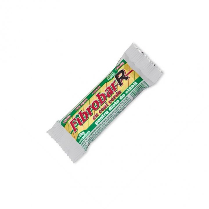 Fibrobar-R cu ceai verde este un baton nutritiv cu fibre, cereale, L-Carnitina, seminte de in si ceai verde, indicat in dietele pentru slabit.