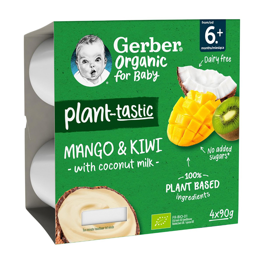 GERBER BIO Desert Mango, Kiwi, cu Lapte de Cocos, de la 6 luni, Cutie 4 x 90 g, Nestle