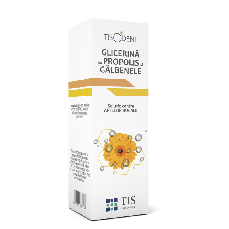 Glicerina cu propolis si galbenele este o solutie contra aftelor bucale, care are efect bacteriostatic, fungistatic si antiinflamator datorita asocierii celor doua extracte naturale.
