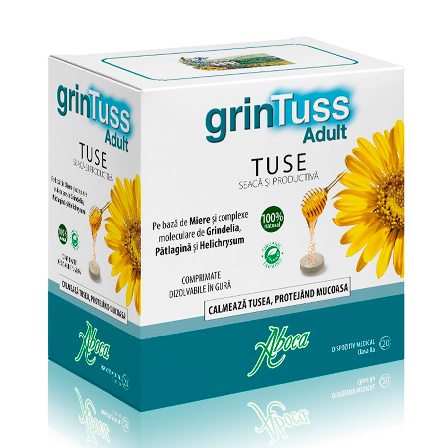 Grintuss Adult comprimate este indicat pentru tratamentul tusei, atat uscate cat si productive, la adulti si copii incepand cu varsta de 12 ani.