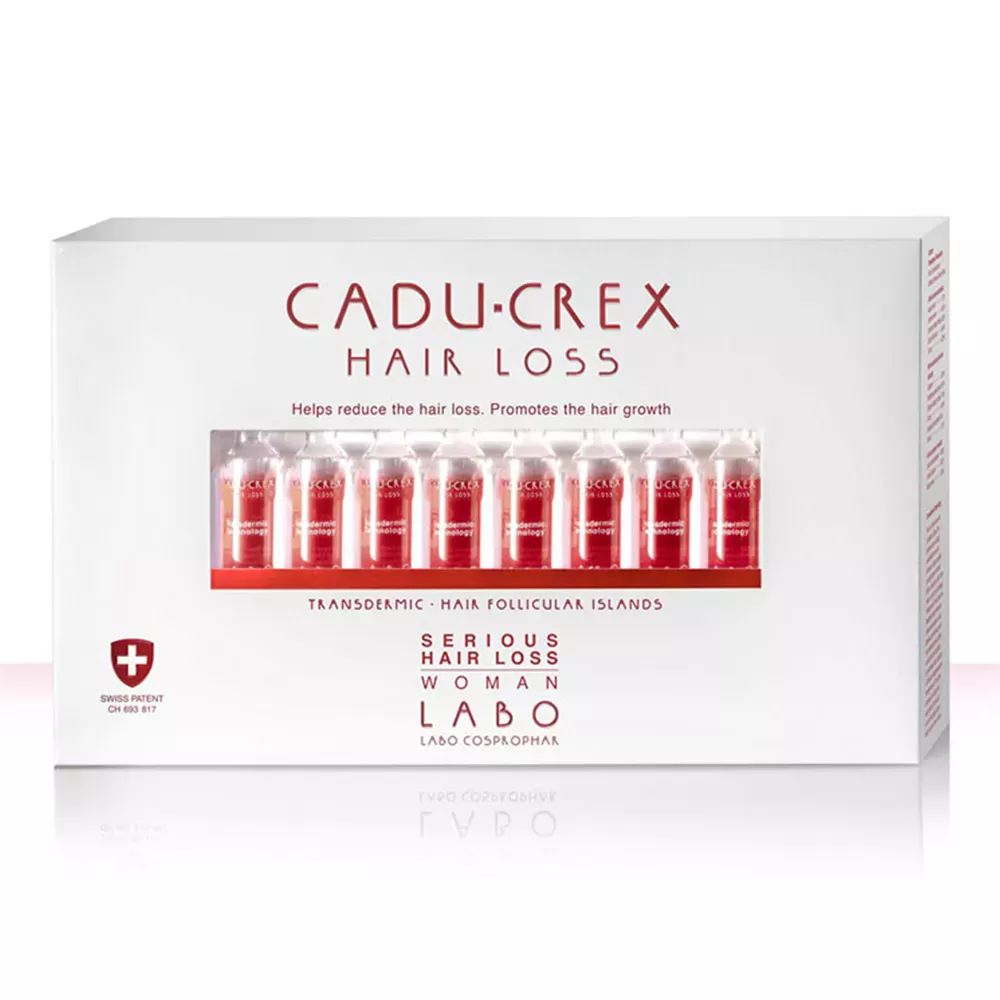 Cadu-Crex este un tratament dermato-cosmetic topic, sub forma de fiole, impotriva caderii parului, care ajuta la reducerea caderii parului si sustine re-cresterea acestuia. Prin ingredientele sale active si tehnologia transdermica pentru penetrarea deschiderilor foliculare (atat pentru foliculii de par singulari cat si pentru Insulele Foliculare Capilare), CADU-CREX asigura patrunderea moleculelor de regenerare in peste 90% din suprafata scalpului, versus 4% penetrare doar prin intermediul foliculului capilar*.