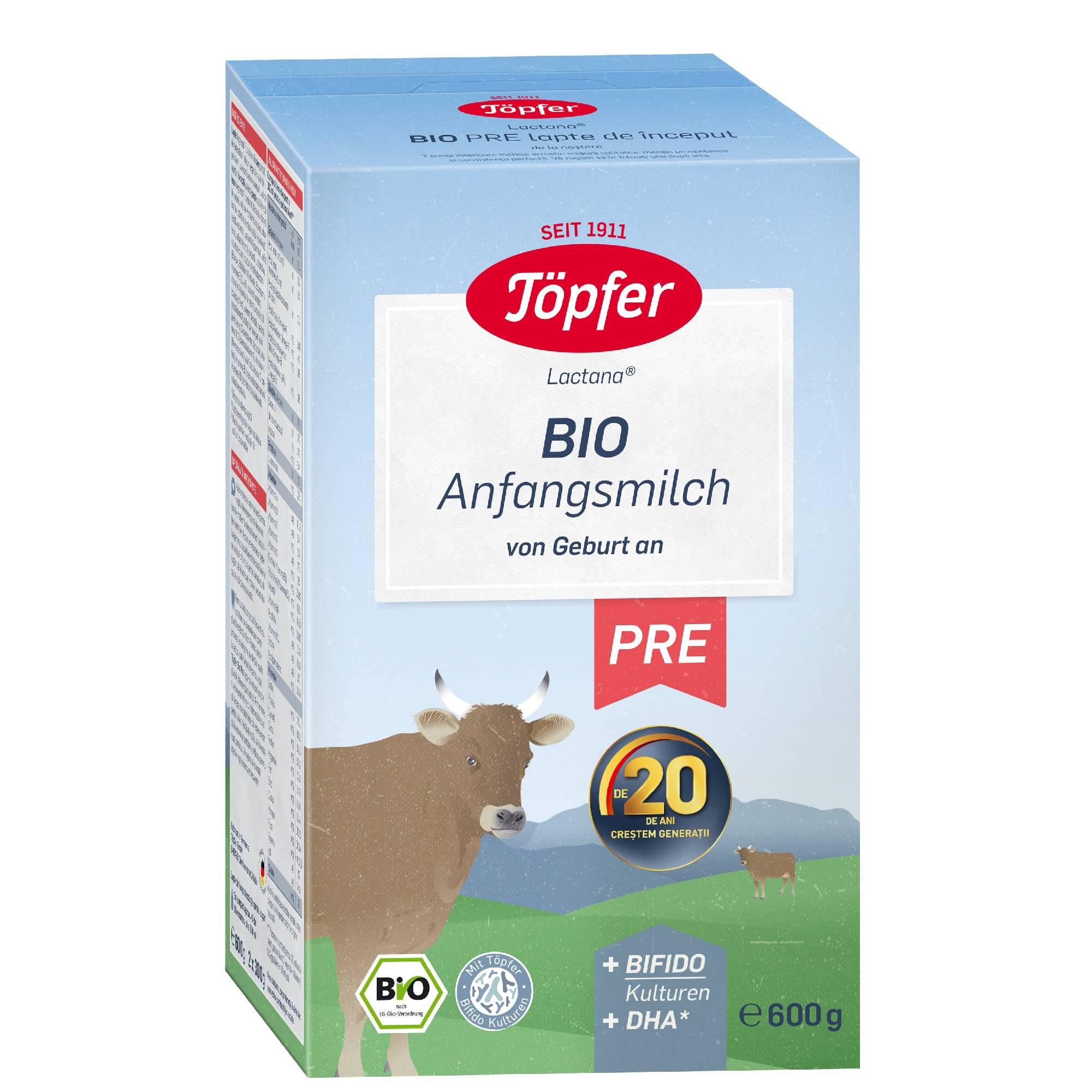 Topfer Bio Pre este o formulă organică de lapte praf degresat, ce poate fi oferită de la naștere până la vârsta de 6 luni, în cazul în care alaptarea nu este posibilă sau atunci când laptele matern nu este suficient. Are consistență apropiată de cea a laptelui matern, îndeplinind cei mai exigenți parametri calitativi.