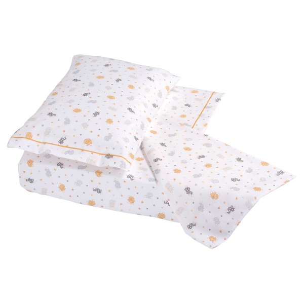 Setul de lenjerie Rosa Tris Fantasia 3 piese pentru patut de copii 60 x 120 cm, produs de Prima Infanzia, Italia, este compus din cearceaf cu banda elastica pentru o fixare, husa pilota cu model colorat, husa perna. Setul este produs din bumbac 100%, antialergic, antibacterian, lavabil la 60 grade la masina automata. Culorile utilizate sunt sigure pentru copii si netoxice.