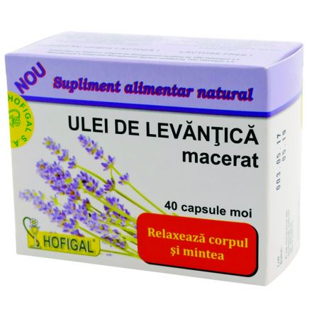 Uleiul de levantica, 40 capsule, de la Hofigal, Romania, are prorpietatea de a relaxa corpul si mintea.