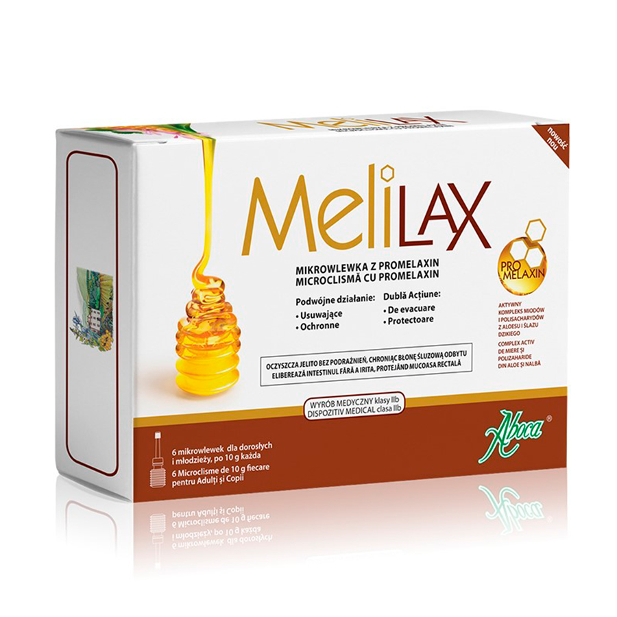 Melilax Microclisma este o microclisma inovatoare pe baza de miere, care combina o actiune echilibrata de evacuare cu o actiune protectoare si calmanta a mucoasei rectale, utila pentru a combate disconfortul, iritatia si inflamatia, prezente in caz de constipatie. Actiunea dubla a produsului Melilax se obtine datorita PROMELAXIN, un complex activ de miere din nectar, special selectat si prelucrat conform continutului lor de monozaharide, polizaharide si melanoidine, imbogatit cu fractia polizaharidica din Aloe si Nalba.