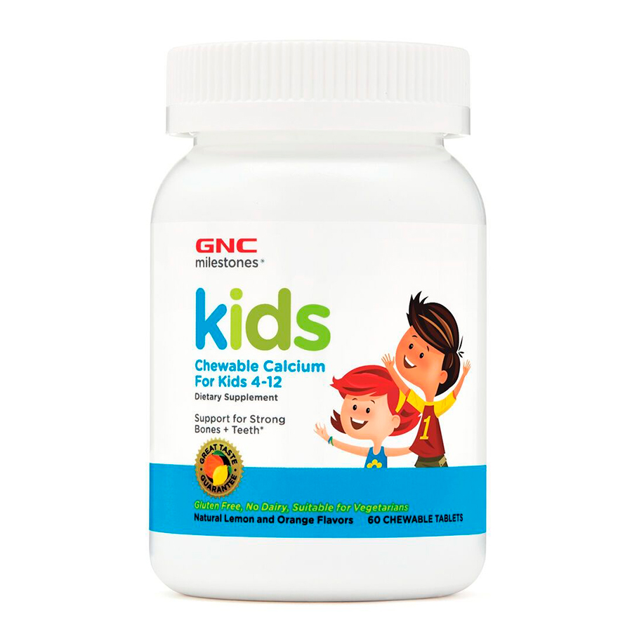 Milestones Kids Chewable Calcium, Calciu Pentru Copii 4-12 ani, cu Aroma Naturala de Limonada si Afine, 60 tablete, General Nutrition Corporation (GNC)