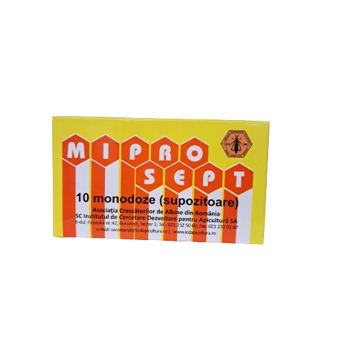 Supozitoarele Miprosept, 10 monodoze, produse de Institutul de Cercetare-Dezvoltare pentru Apicultura Bucuresti, contribuie la mentinerea sanatatii vasculare a colonului prin imbunatatirea permeabilitatii si elasticitatii vaselor in tulburarile anorectale de diferite etiologii. Produsul stimuleaza regenerarea celulara la nivel rectal si contribuie la reducerea dilatarilor venelor hemoroidale, usurand in acest fel eliminarea scaunului.