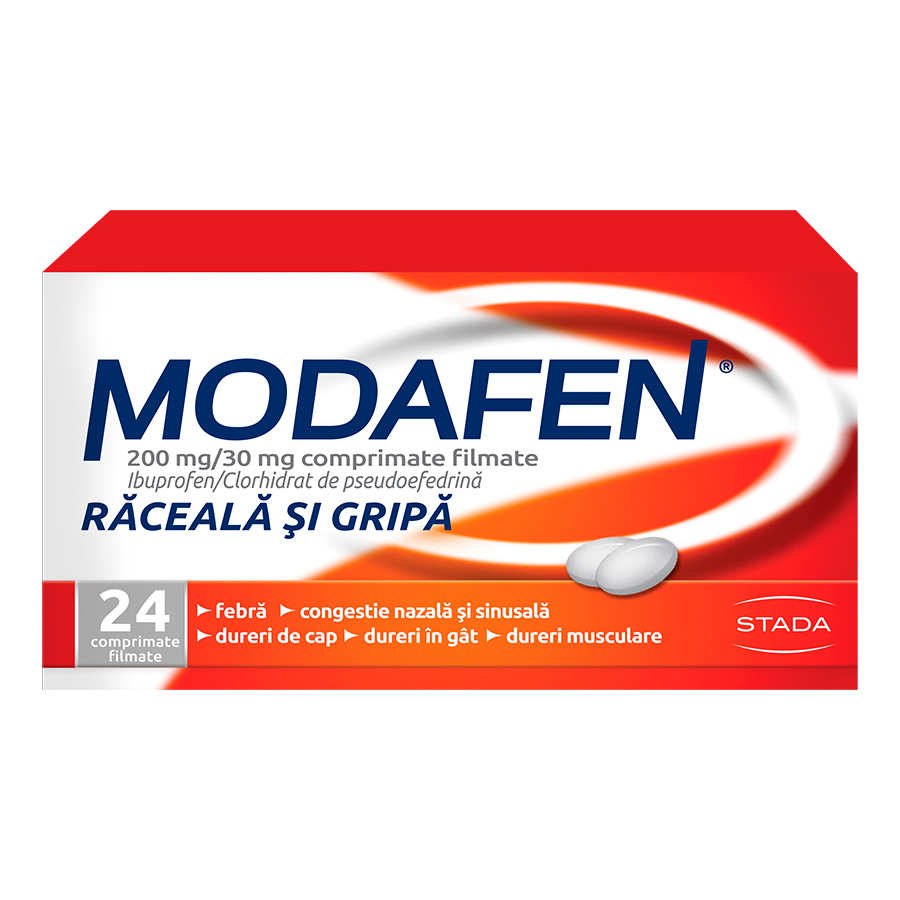 Modafen face parte din grupa medicamentelor decongestionante nazale de uz sistemic, simpatomimetice, combinaţii, utilizat în ameliorarea simptomelor neplăcute ale gripei şi răcelii, cum sunt congestia nazală şi sinusală, durerea de cap, febră, durere în gât, dureri musculare şi articulare.