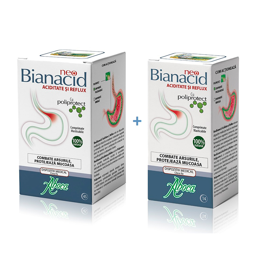NeoBianacid este indicat pentru tratamentul problemelor legate de aciditate, cum ar fi arsurile, durerea, refluxul gastroesofagian si gastrita.