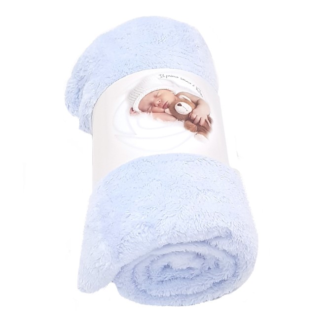 Paturica Rosa Nuvola 100x150 cm, produsa de Prima Infanzia, Italia, culoare albastru deschis, este confectionata din fibre WELLSOFT - fibre calde si foarte usoare.