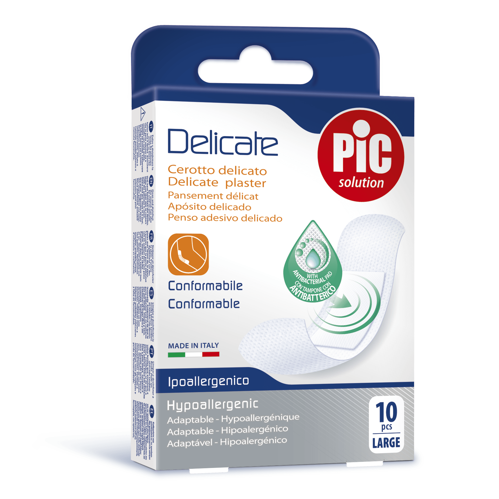 Pic Solution Plasturi piele sensibila Delicate cu sol.antibacteriana, 25x72mm, 10 bucati, Dasco Distribution Concept