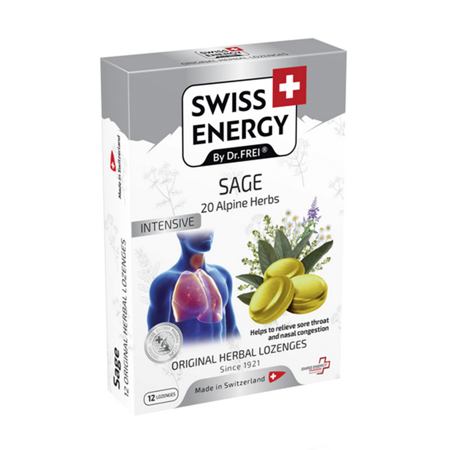 Pastilele pe bază de plante SWISS ENERGY Sage au fost un remediu casnic dovedit pentru tuse. Datorită proprietăților sale antiseptice și expectorante, salvie a fost folosită pentru a calma în mod natural gâtul iritat.
