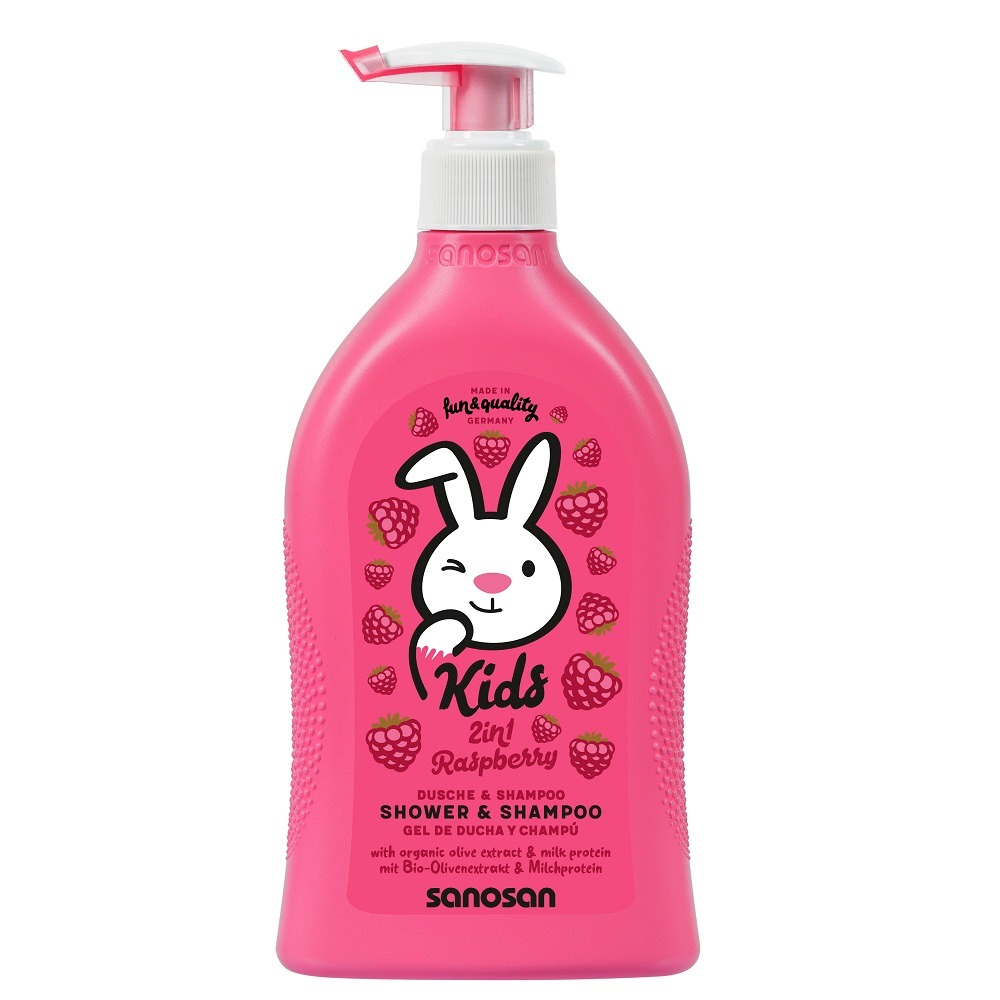 Sanosan kids Gel de dus si sampon 2 in 1 cu aroma de zmeura, 400 ml, Mann Schroder